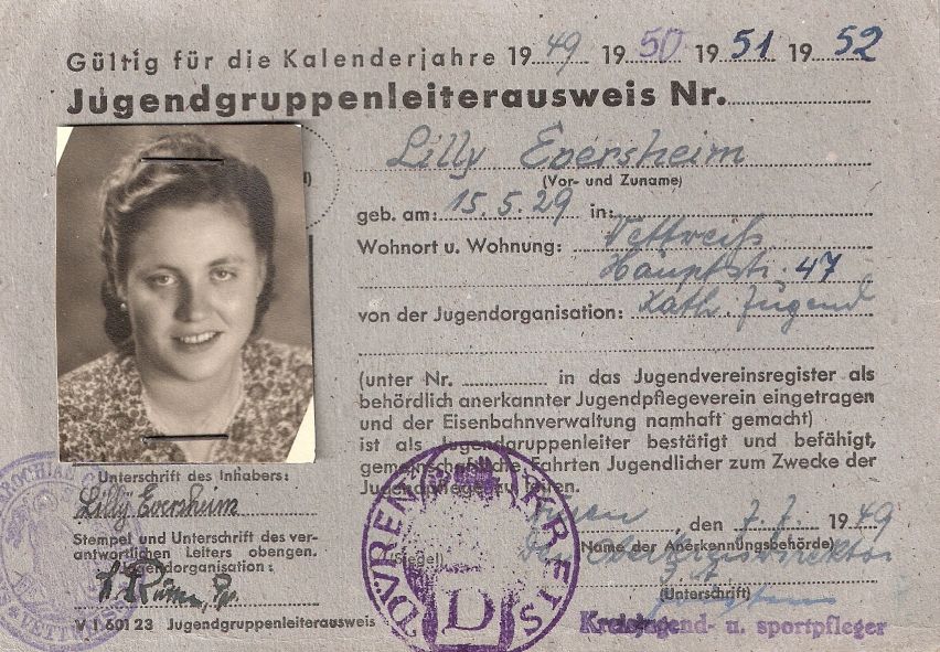 Den wiederkehrenden Lebenswillen habe ich ja bereits angesprochen, und animiert durch die Jugendpflegerin Frau Gartz brachte ich mich in die Jugendarbeit ein und gründete eine Mädchengruppe. Handarbeit, gemeinsames Singen und kleinere Ausflüge wurden hier gepflegt. Dies mag verwunderlich sein und in der heutigen Zeit belächelt werden, aber so war es nun einmal in der Nachkriegszeit. Aus dem wenigen, was die Leute hatten, versuchten sie das Beste zu machen.